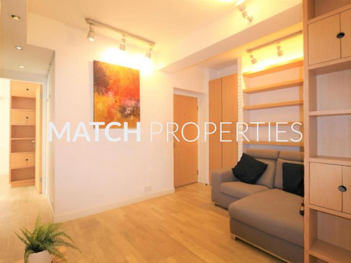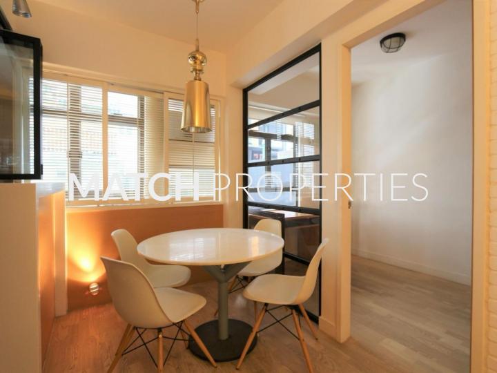 Furnished 2 bedroom plus an office, open kitchen, steps from the escalator. High quality decoration with lots of built in storage. Queen size bed (no mattress). Oven and washer in the kitchen.