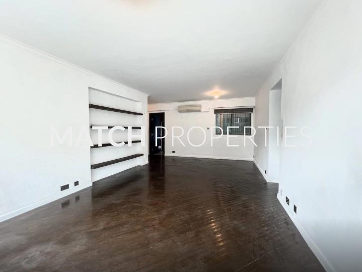 Renovated apartment with three bedrooms including a master ensuite and a maid room. Spacious living room. Kitchen is well-equipped with appliances and ample storage. Suitable for family.