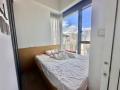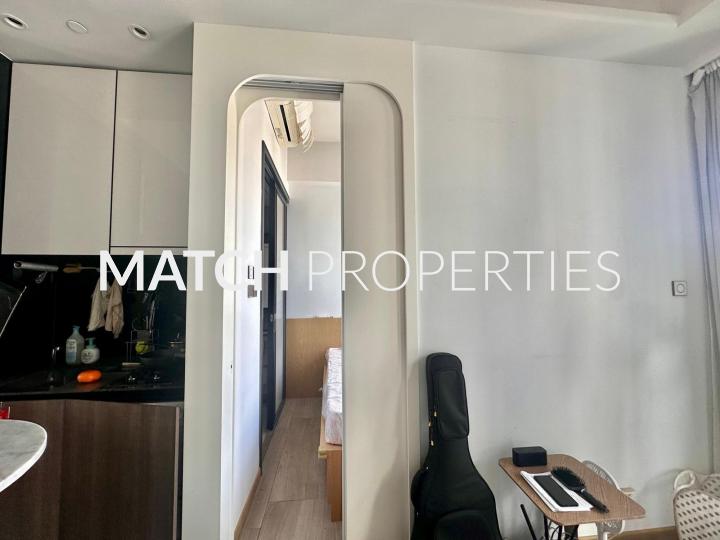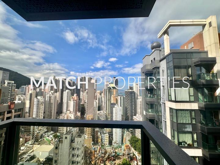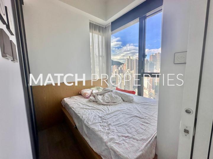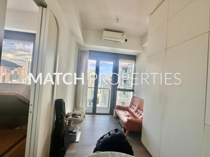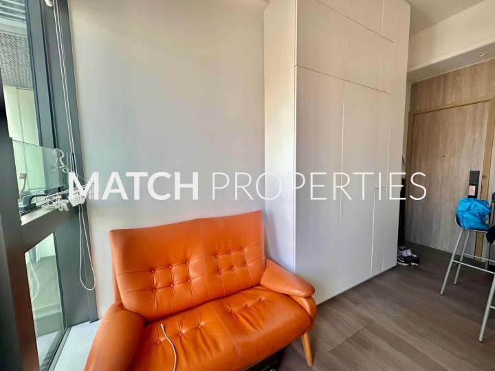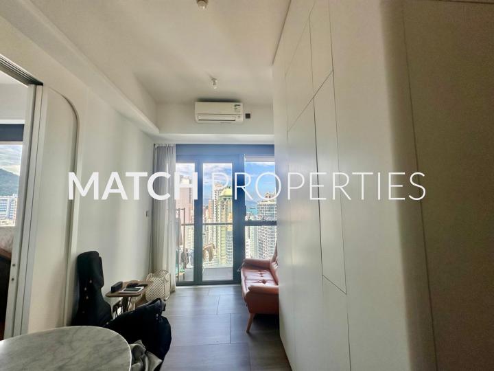 High floor one bedroom apartment with balcony. Built in queen size bed with storage.