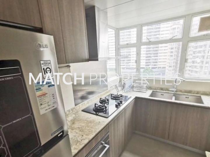Bright and open 3 bedroom apartment with practical layout. Fully equipped kitchen and maid room with toilet.
