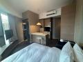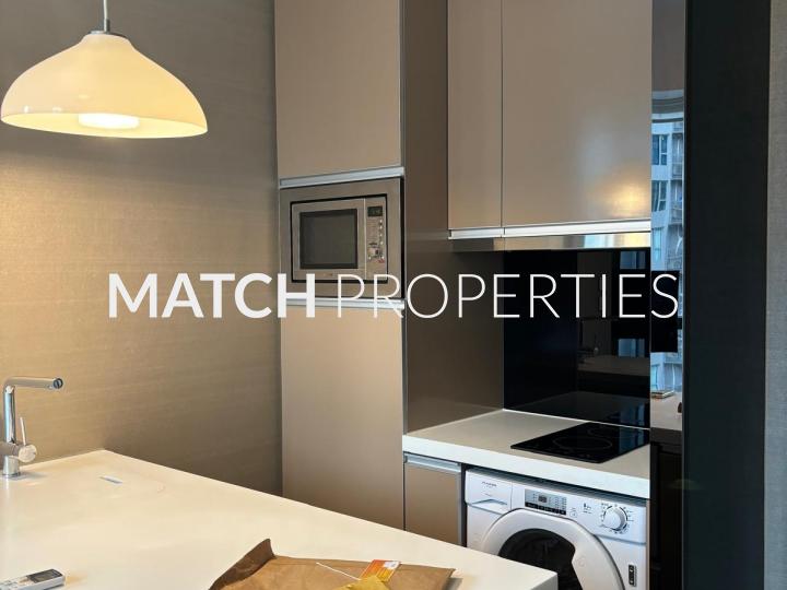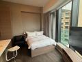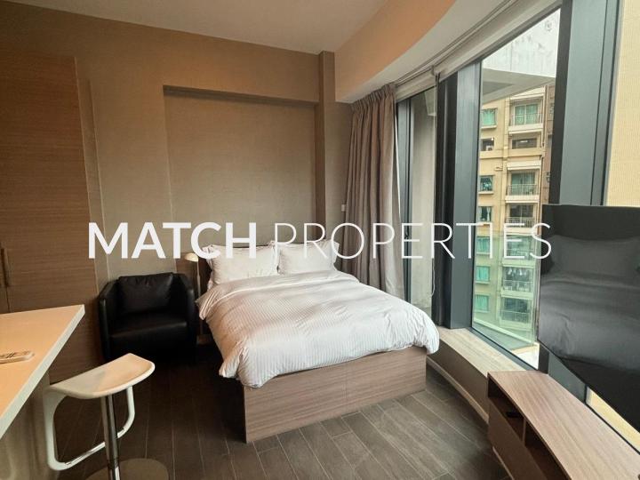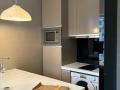 Fully furnished studio apartment with open plan kitchen.