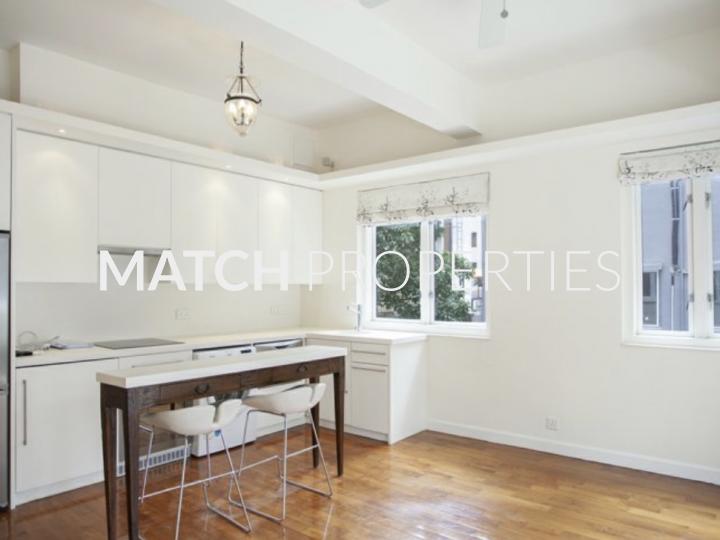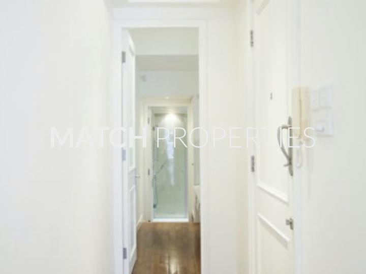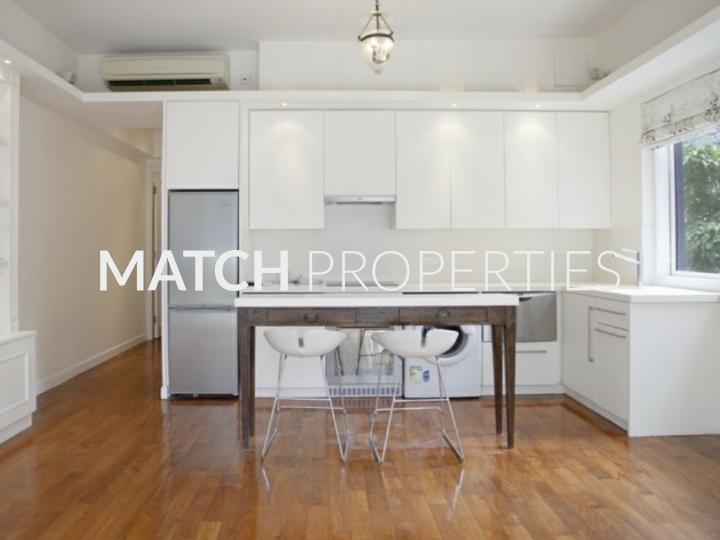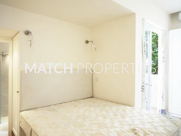 Stylish one bedroom apartment in a walk up building. Lovely balcony with green view.