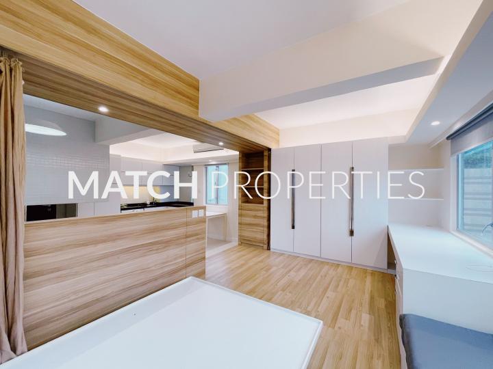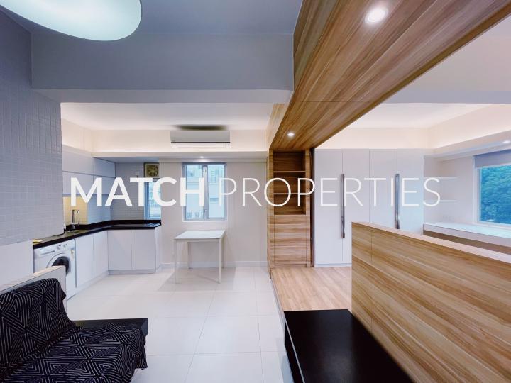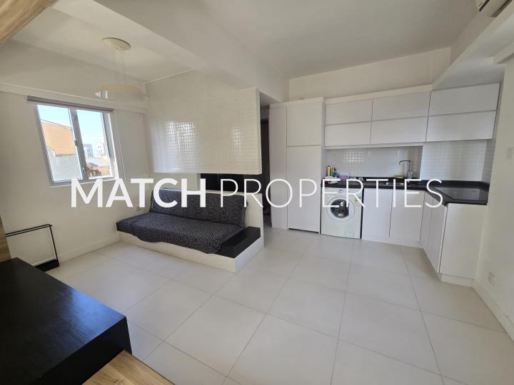 Modern and chic studio apartment on high floor. Bright and airy. Great storage space.