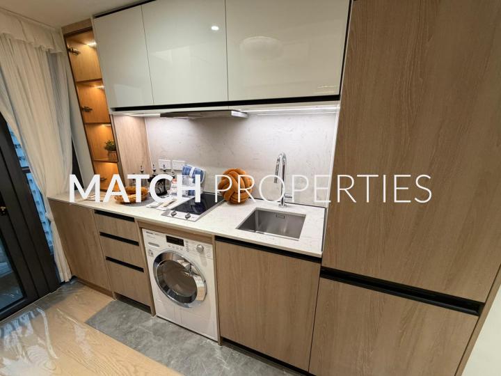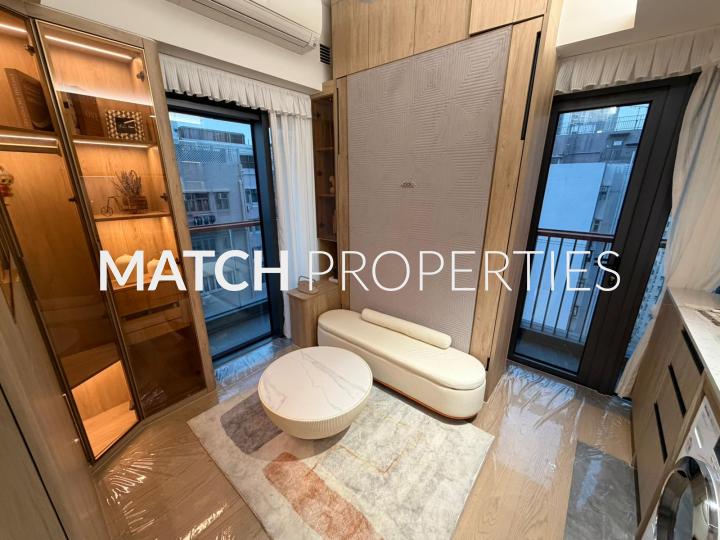Modern studio apartment with murphy bed. Balcony with open view.