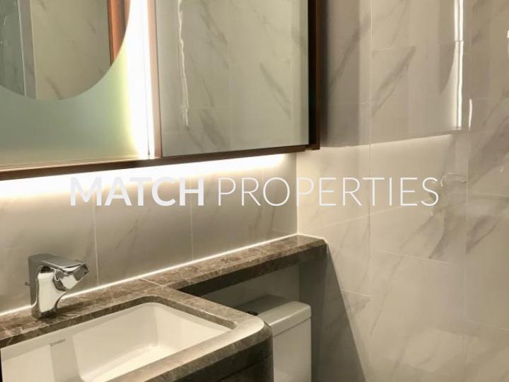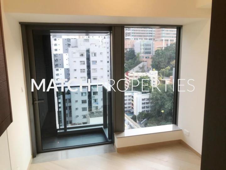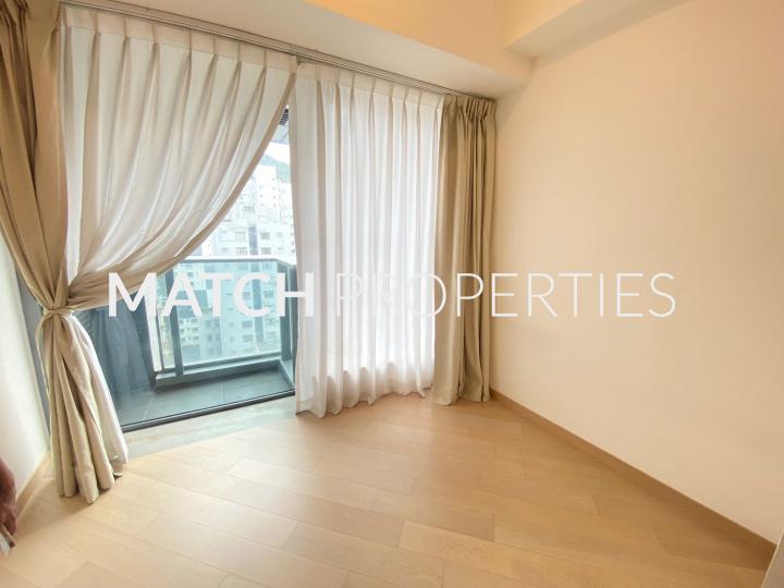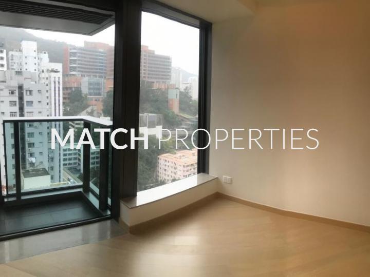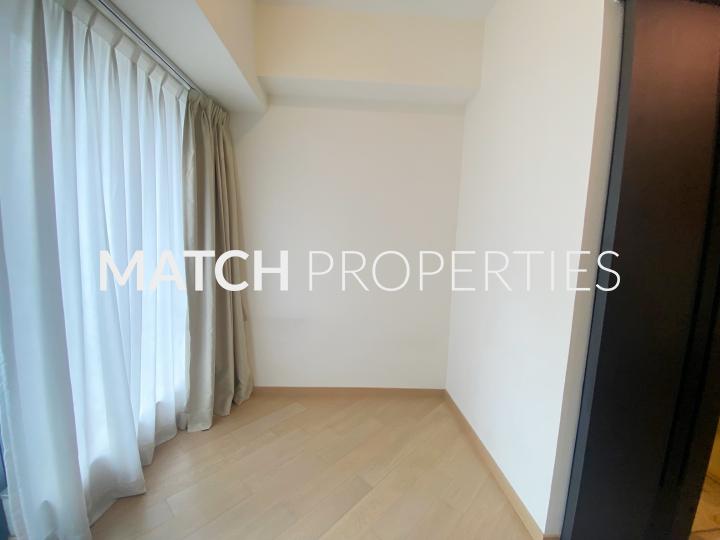 High floor studio apartment with open plan kitchen.
