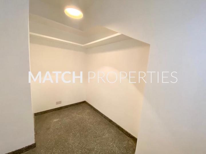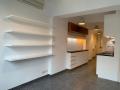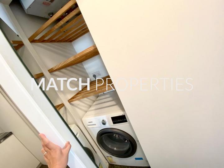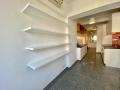 Unfurnished, lots of built in cupboard space and shelves.